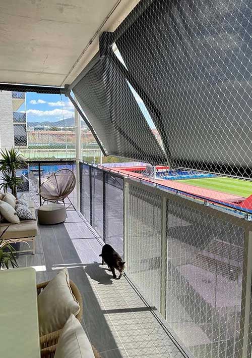 Nuestras mallas de protección anticaídas son de altísima resistencia. Previenen de caídas a niños, gatos, perros y todo tipo de mascotas; a la vez evitan la entrada de palomas.